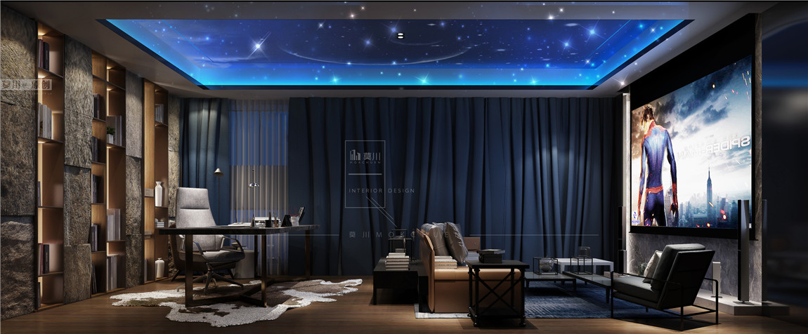 2、書房天花采用星空頂做法,讓天花更有靈動性。