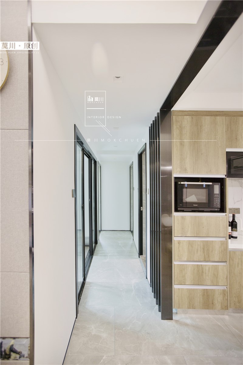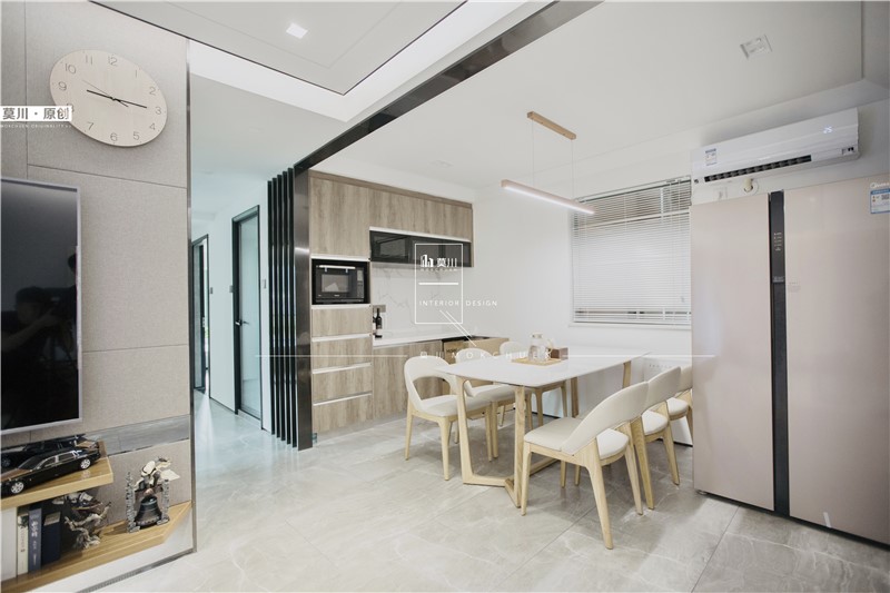 廚房在原始布局上是U字型的布置,兩個(gè)人進(jìn)去操作會(huì)擁擠,經(jīng)過(guò)優(yōu)化,我們把廚房改成了中廚,冰箱及部分廚電外置,分了中西廚,中廚空間就寬裕很多。