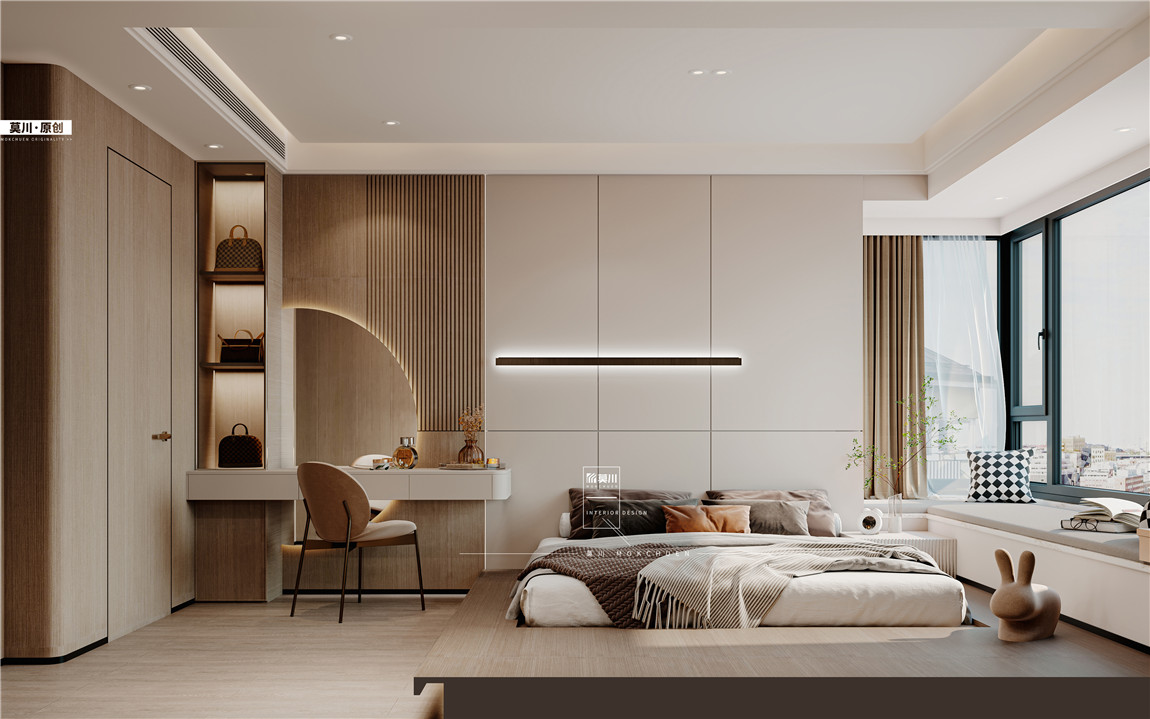 采用一步一景的手法,攝入木色及金屬的質感,造型的構造,整體空間感受,以及空間之間的互動性,整體空間的線條、色彩、配飾無不散發簡約時尚的氣質,低調詮釋優雅和精致生活,同時給人以溫馨舒適的感官享受,和諧融洽的色彩運用,品質感和設計感兼具的材質選擇,表現了業主對于生活的態度,在餐廳空間中,設計以當代簡約的形式勾勒生活美學,簡凈的淺色調,天然的紋理和材質呈現出質感美,整體空間流瀉出溫靜自然的氣息。
