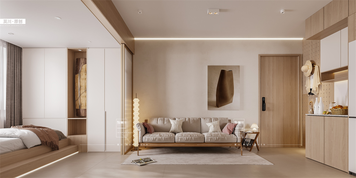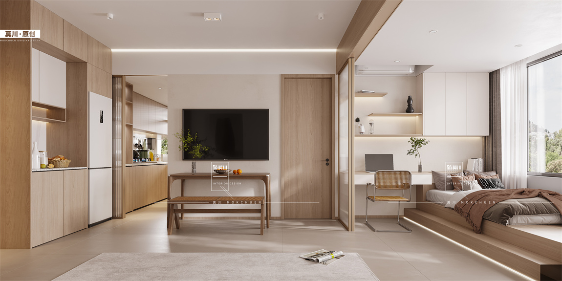 作為多元化的家庭社交場(chǎng)景的客廳,全開(kāi)放式的客餐廳臥室一體化,輕松容納每個(gè)家庭成員的多層次需求,將平凡的小生活描摹為詩(shī)意的溫情畫面。