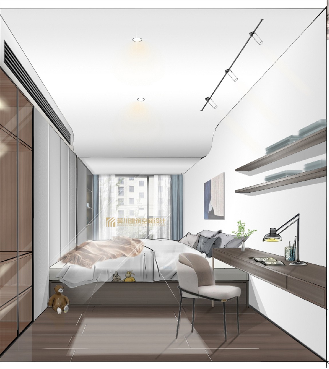 廚房打開變成了開放式,餐廚一體,一開門空間感就很大,公共空間形成整體。主臥做成了豪華套間,原始衛(wèi)生間小,但是客戶想要浴缸,所以另辟蹊徑,將衛(wèi)生間做成半開敞式,淋浴房和馬桶間用霧化玻璃隔起來,泡澡區(qū)和洗手盆做成開放區(qū),讓主臥的視覺延伸性更好.