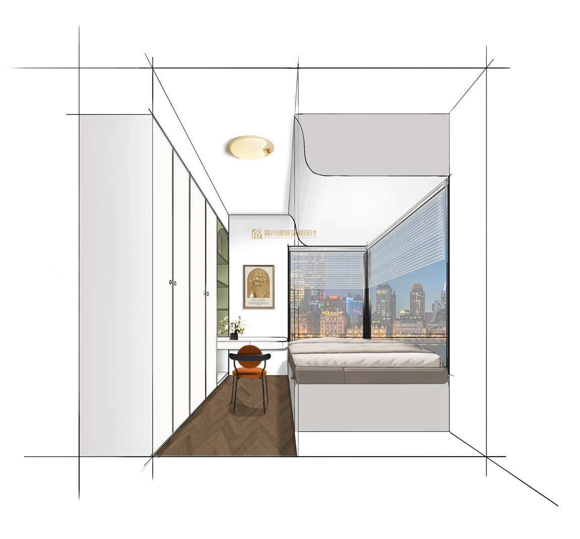 主臥套房衣帽區(qū)功能的增設(shè),哪個(gè)女孩子不想擁有一個(gè)獨(dú)立的衣帽區(qū)呢~壓縮了主衛(wèi)的面積,充分利用飄窗區(qū)域作為洗手盆